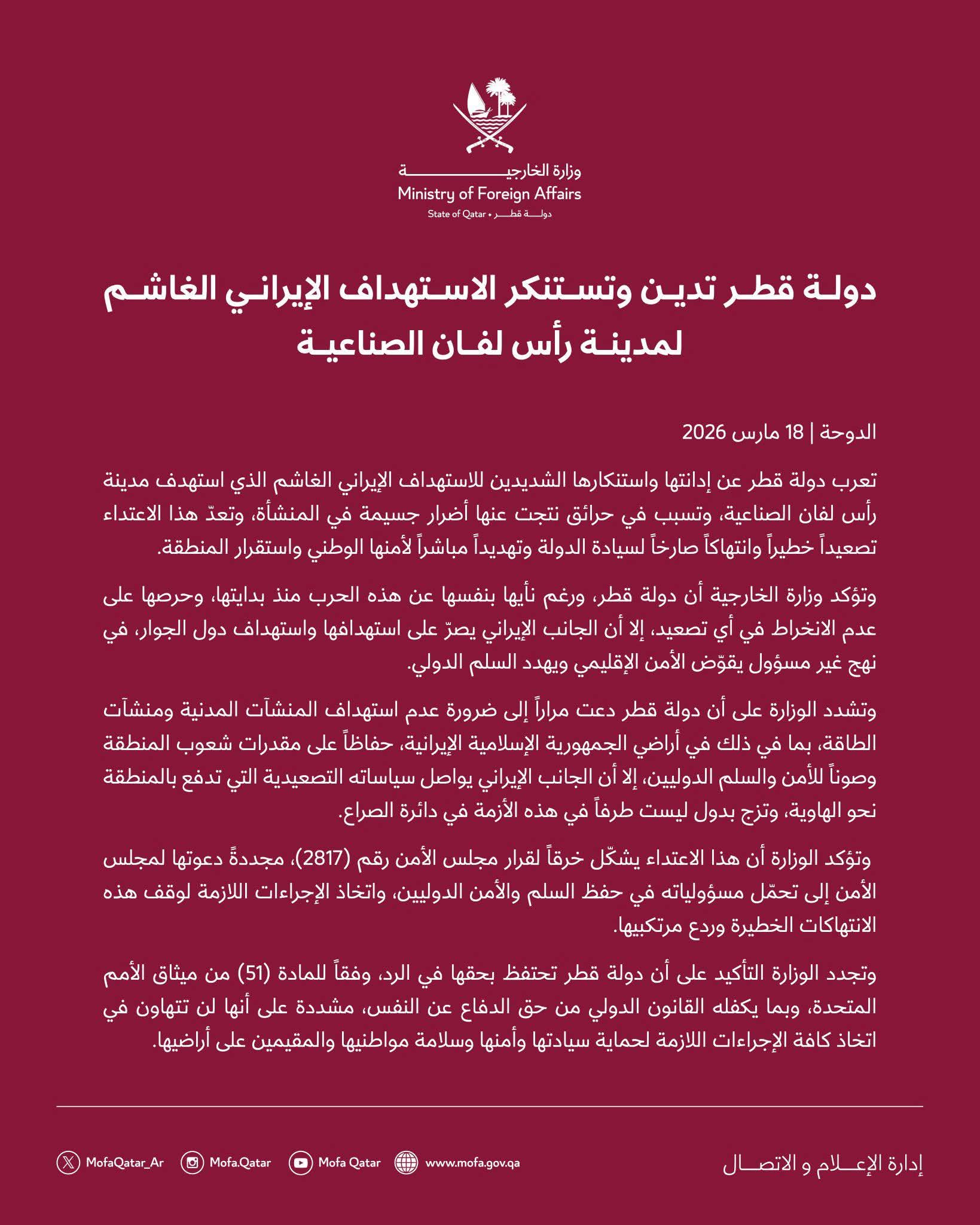Dalka qadar ayaa isagana la sheegay in caawa jug culus loo gaystay iyadoo waraaw la sheegay in ay dowlada Qatar ka timid ah tahay mida hoos ku lifaaqan.